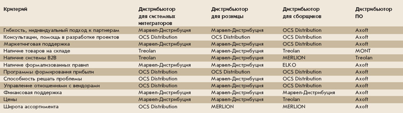 Нашим читателям также будет интересно узнать, кто из вендоров стал лучшим не только в общем зачете, но и получил высшие оценки по каждому из предложенных критериев (см. табл.).