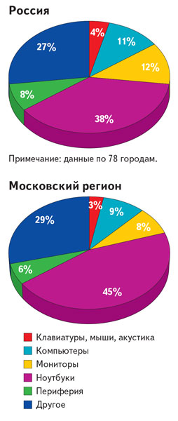 Магазины вроде «Ашана» в принципе не ориентированы на торговлю по безналу, плюс к тому — для малой фирмы часто требуется все-таки именно решение, то есть нечто большее, чем набор коробок с техникой. Организовать локальную сеть, наладить взаимодействие ПО на компьютерах в ней, установить сетевой принтер, файловый и почтовый серверы, да еще и по безналичному расчету и за разумные, с точки зрения малого предпринимателя, деньги, — на такое пока способны только специализированные компьютерные магазины, доля которых в общем объеме ИТ-рынка все уменьшается. Кроме того, во всех российских регионах розничный ИТ-рынок заметно стратифицируется. Выявляются безусловные лидеры, они становятся недосягаемыми даже для средних компаний, а множество мелких еще сильнее мельчают и частью разоряются.