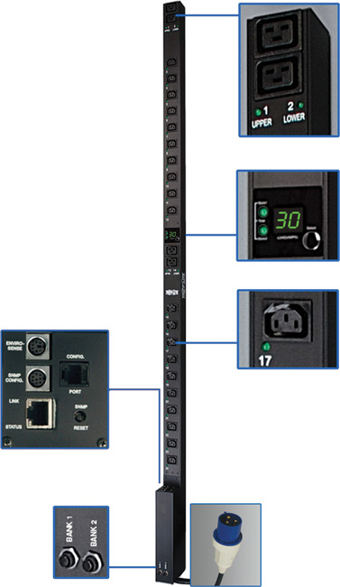 Управляемый блок распределения питания (БРП) Tripp Lite PDUMV32HVNET обеспечивает подачу электроэнергии множеству потребителей от одного источника питания, обеспечивая при этом функции удаленного контроля и управления по сети. Это позволяет включать, выключать, восстанавливать или блокировать питание каждой отдельной розетки, контролировать параметры электропитания на объекте и дистанционно контролировать потребляемую мощность.