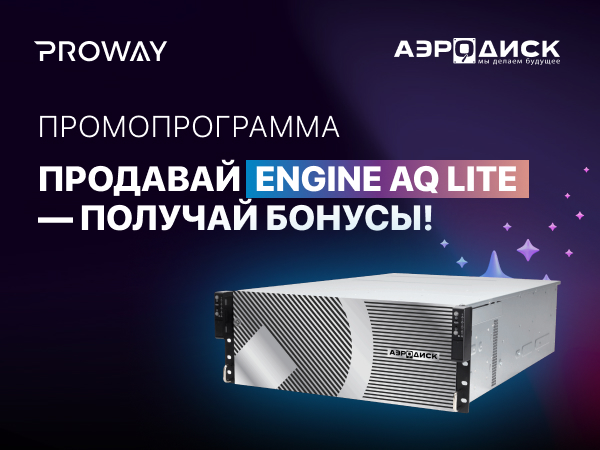 PROWAY, совместно с компанией АЭРОДИСК, российским разработчиком СХД и систем виртуализации, запускает специальную промопрограмму: «Продавай ENGINE AQ LITE – получай бонусы!»