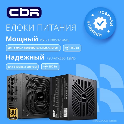Продукты: Новые блоки питания: CBR PSU-ATX550-12MD (550 Вт), CBR PSU-ATX850-14MG (850 Вт)
