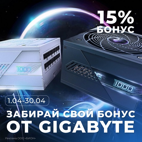 Покупай блоки питания Gigabyte на сумму от 10 тыс. руб. и получи бонус 15%.