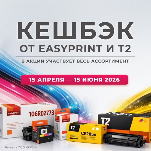 Получи кешбэк на счет при покупке товаров EasyPrint и Т2: