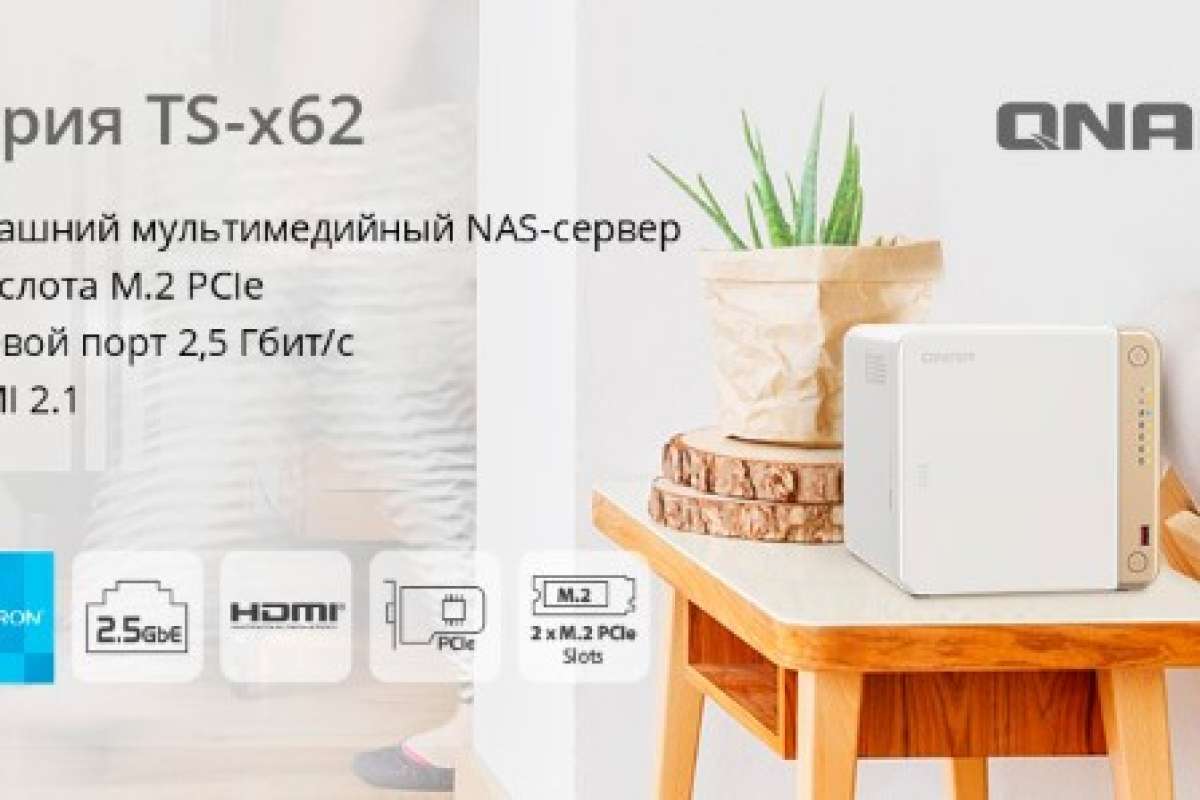 Компания QNAP выпустила сетевые накопители TS-262 и TS-462 на базе процессора Intel® Celeron® N4505, которые оснащены двумя и четырьмя дисковыми отсеками соответственно, двумя слотами M.2 PCIe для NVMe SSD, сетевым портом 2,5 Гбит/с, слотом расширения PCIe Gen 3, а также видеовыходом HDMI 2.1 для прямого вывода приложений и мультимедиа на подключенные мониторы или телевизоры.