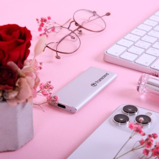 Transcend ESD260C - портативный твердотельный накопитель с ударопрочным алюминиевым корпусом серебристого цвета.