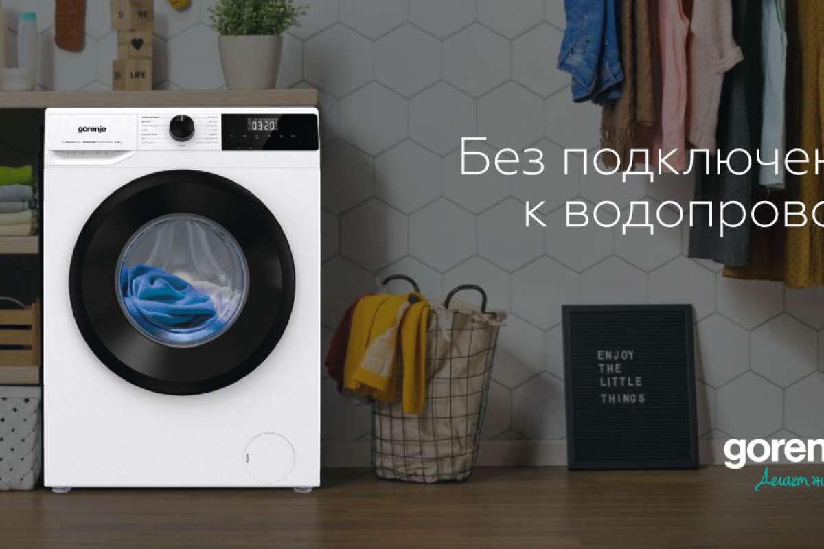 Главная «фишка» этой модели — возможность работать без подключения к водопроводу. Поистине революционная функция реализована с помощью встроенного бака для воды. Больше не нужно привязываться к определенному местоположению — стиралку можно установить где угодно, будь то ванная комната, кухня или специально оборудованное место для стирки. Или вообще на даче, где только колодец или привозная вода. Конечно, работа в обычном режиме тоже возможна.