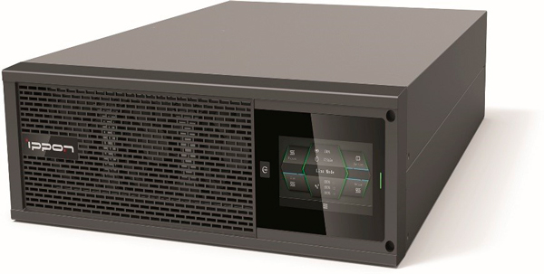 На передней панели ИБП размещены кнопка включения, светодиодный индикатор и цветной сенсорный ЖК-экран, на котором отображается информация о режиме работы, состоянии нагрузки, событиях, измерениях и настройках и переключения рабочих режимов. В ИБП встроен датчик гравитации, что особенно удобно: при изменении монтажного положения ориентация ЖК-экрана меняется автоматически. Звуковое оповещение можно отключить в настройках.