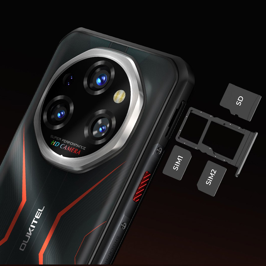Модель Oukitel WP55 Pro ориентирована на эксплуатацию в сложных условиях, имеет ударопрочный влагозащищенный корпус (стандарты IP68, IP69K, MIL-STD-810H) и оснащена мощным фонарем (Camping light) и громким динамиком (Loudspeaker).