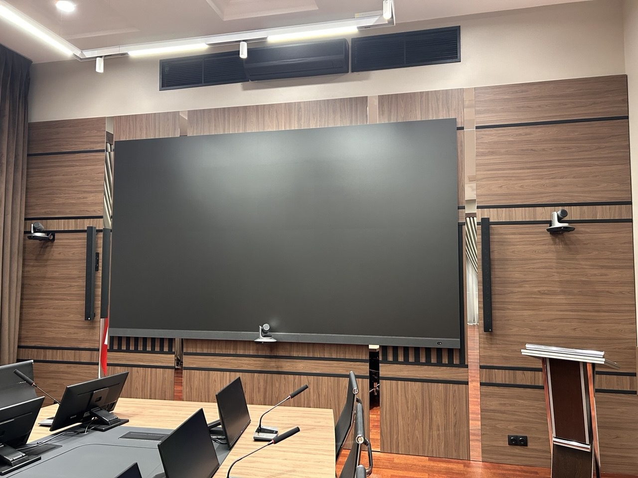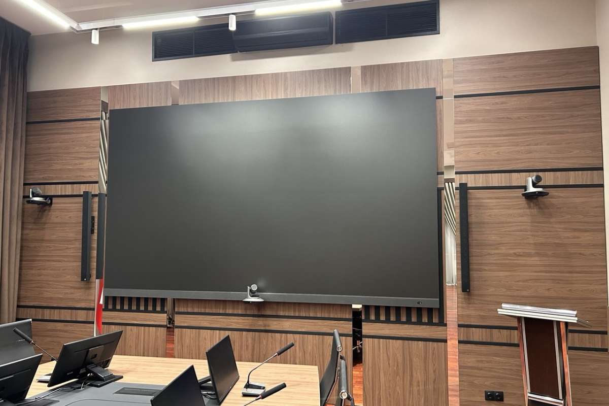 В рамках реализации проекта на начальном этапе рассматривался вариант оснащения помещения проектором и рулонным экраном. Однако после детального анализа, демонстрации качества визуализации проекционного решения и оценки особенностей размещения и монтажа было принято решение в пользу LED-экрана. Благодаря работе специалистов ГК «КОМПЬЮТЕРЫ И СЕТИ» конференц-зал был полностью модернизирован и приведён к современным требованиям проведения совещаний и видеоконференций. После внедрения и настройки комплексной аудиовизуальной системы:
